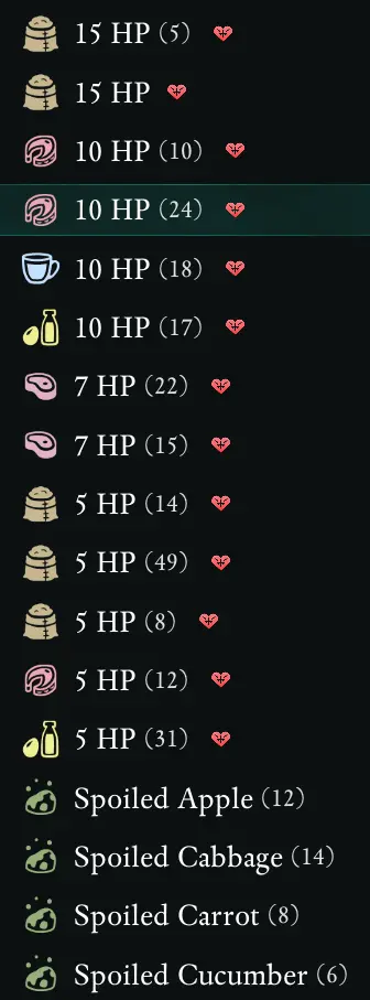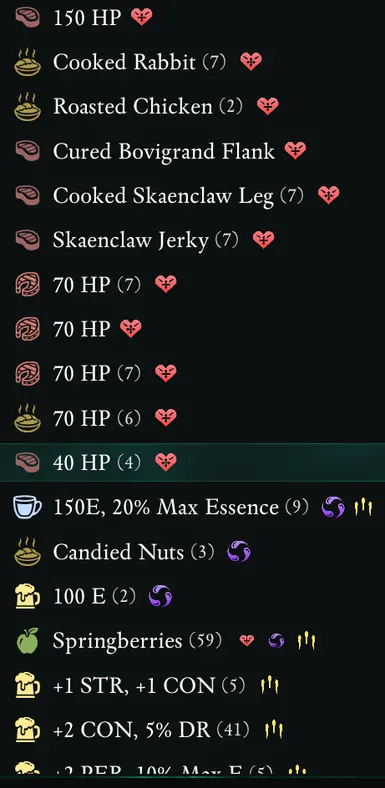 《宣誓》描述性食物MOD,一个简单的mod,这是打破沉浸感,因为世界中消耗品显示的文本也会发生变化,因此当您看到 Spring Berries 时,将鼠标悬停在消耗品上时,您现在会看到它的属性(15 HP,15 E)。