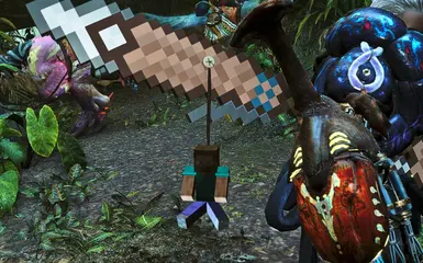 《怪物猎人:荒野》我的世界史蒂夫吊坠MOD,这个模组为你的游戏将希望围巾 G:蓝色/红色吊坠替换为 Minecraft Steve 吊坠。