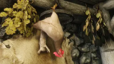 《上古卷轴5:天际重制版》悬挂死鸡MOD,您现在可以在原版游戏中的兔子和野鸡旁边找到死鸡。由于它们是北欧人最常见的食物来源之一,因此它们与其他被杀死食用的小动物一起出现在北欧房屋中是非常有意义的。感兴趣的小伙伴快来3DM下载吧!