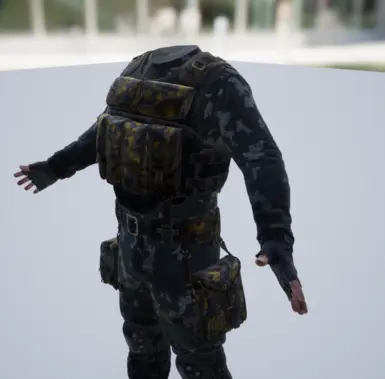 1、豪华版雇佣兵轻装的套装进行了黑灰色重新着色,背心和包包也采用了大黄蜂条纹迷彩风格的重新着色。