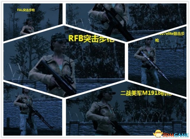 里面有美军二战机枪M1918A2、RPK机枪、M107的另一个兄弟版本、G36K突击步枪、L85A1突击步枪、FAL突击步枪、RFB突击步枪等六款枪械替换。