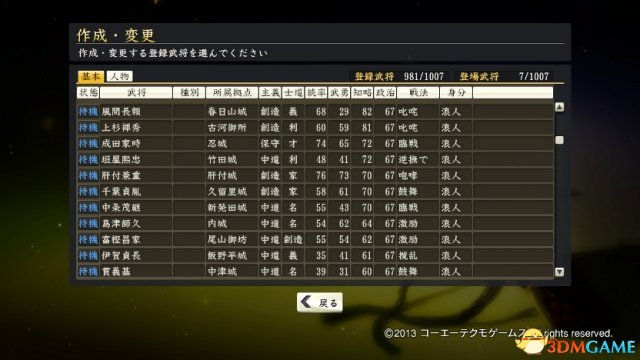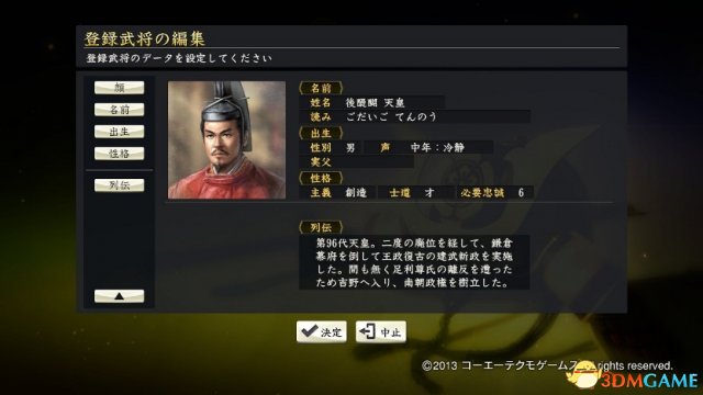 信长之野望14:创造 PK版 南北朝1000人武将包v2.0;适用于1.10版的新武将档,全部符合日被南北朝历史,由3DM论坛会员 ouyangtianyi 精心制作,嫌前期剧本武将太少的玩家这下有福了。