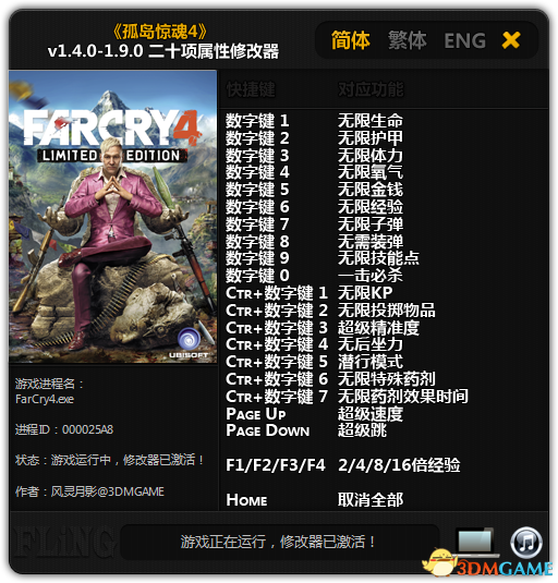 1. 必须完全进入游戏/载入存档后才开启修改器功能,否则在读取时会跳出。