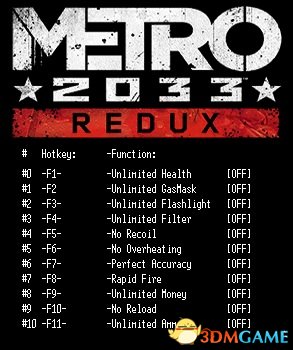 您目前下载的是(地铁2033 v18.03.2017十一项修改器[LIRW])。 关注 【 3DM微信和微博 】 可解锁更多游戏资源。
