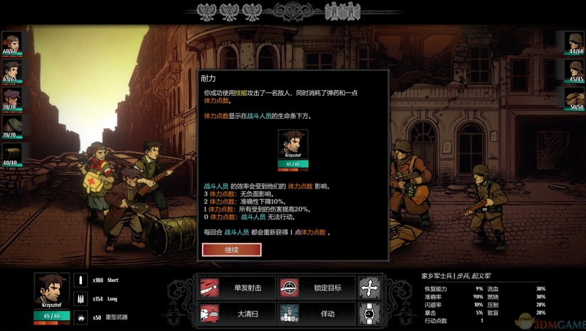 背景设定在二战的回合制战术RPG,拥有多种职业和技能,还需要管理收集到的资源;