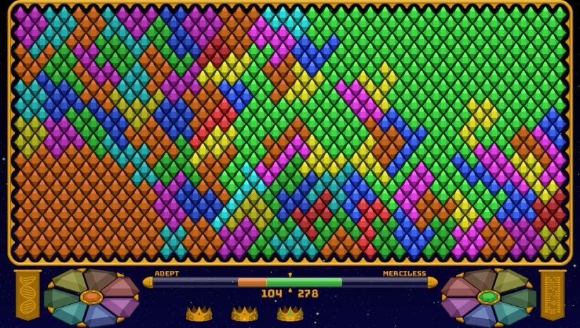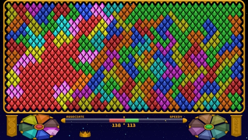 1人《宝石大师(Gem Master)》是一款极简主义的复古风格类休闲益智游戏。在游戏中你的目标是通过消耗所选颜色的相邻区域来扩大对由彩色宝石构成的领域的控制。当你的对手也在尝试同样的方法时,战略思维是必须的,以超过更熟练的竞争者。