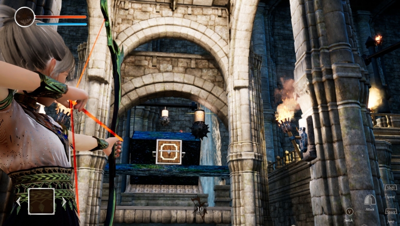 战斗:冒险并非平静,战斗常伴其身。公主可以利用神剑或弓箭战斗,配合特殊情况下触发的QTE反击,并利用道具的冰冻、吹风、滚石等能力配合战斗。