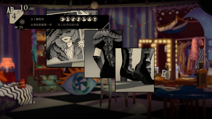 场景融合1950年代马戏团海报风格,角色拥有70余套动态表情动画,车厢、占星帐篷等场景细节烘托人物性格(如姐妹温馨房vs死对头冷战区)。