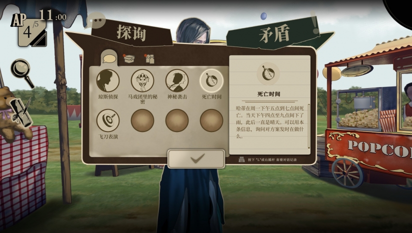 线索触发顺序与矛盾组合影响剧情分支,成就系统包含“天才侦探”(零推理错误)、“马戏之王”(全收集)等32项挑战。