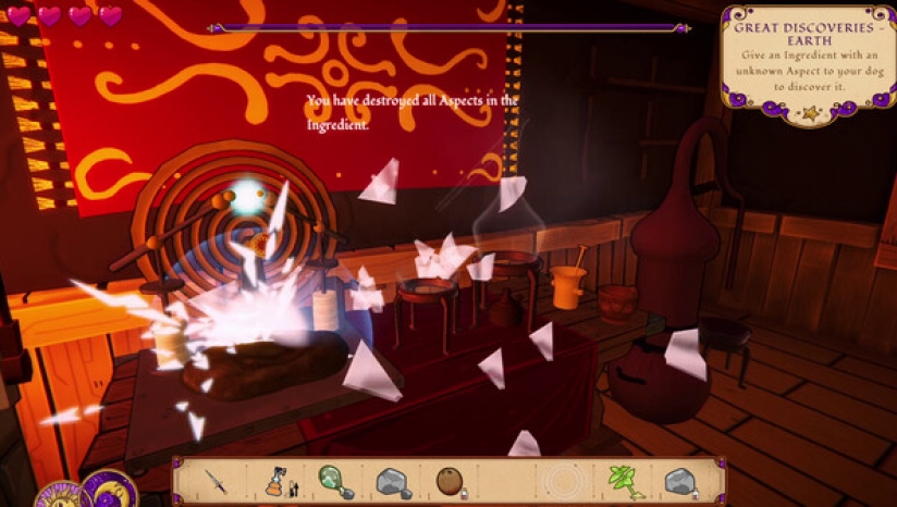 1、熬制药剂:应用各种炼金术(不只如此......- 恶魔祭坛、冬青水、沙漏,以及更多的道具)工具加工原料。之后把它们放进大锅里,开始熬制!