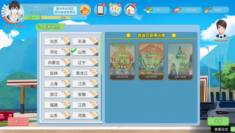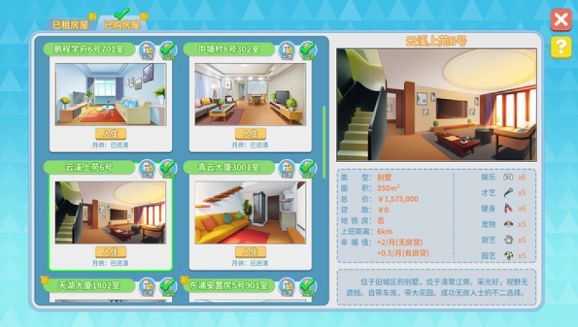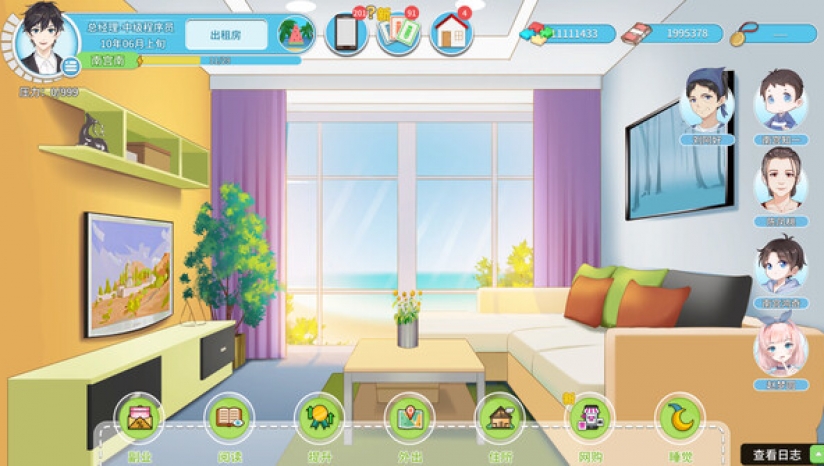 通过分配精力来决定自己的发展路线,将影响到游戏中的学习、工作、生活、社交、恋爱等诸多方面。