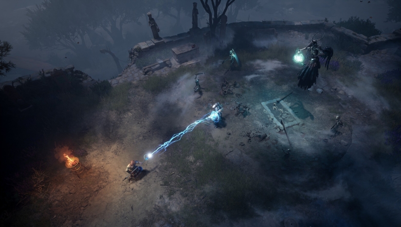 技能粒子光效与物理反馈鲜明(冰霜冻结蔓延、雷电链溅射),Boss战场景破坏演出震撼。