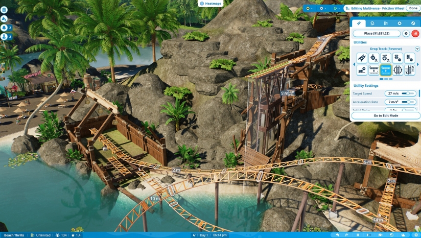 这是核心游戏之一。玩家可以利用游戏提供的丰富工具,设计出既刺激又安全的过山车。这不仅涉及到赛道的设计,还包括材料的选择和速度的控制,以满足不同游客的需求。