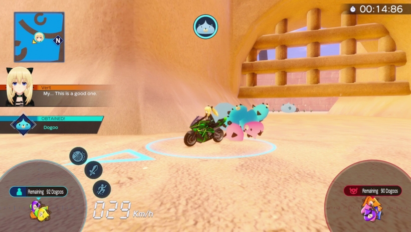 《爆走次元海王星VS巨神史莱犬》是由Compile Heart开发、Idea Factory International发行的动作冒险游戏。游戏设定在被史莱犬淹没的异次元空间,玩家操控天王星涡芽驾驶机车,通过高速漂移、跳跃和机关互动收集史莱犬,同时与四女神展开资源争夺战。核心玩法融合竞速与战斗,玩家需灵活运用冲刺、撞击和技能抢夺对手收集的史莱犬,完成关卡目标。游戏支持机车部件改造,可通过升级引擎、轮胎和武器提升性能,搭配3D动态场景与史莱犬的萌系设计,营造出紧张刺激又充满趣味的跨次元狂飙体验。