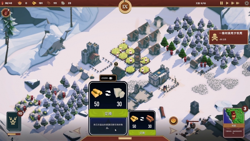 资源(食物、木材、黄金等)的平衡分配是王国繁荣的关键。玩家需规划农田、伐木场等基础设施,同时建造防御工事抵御外敌。