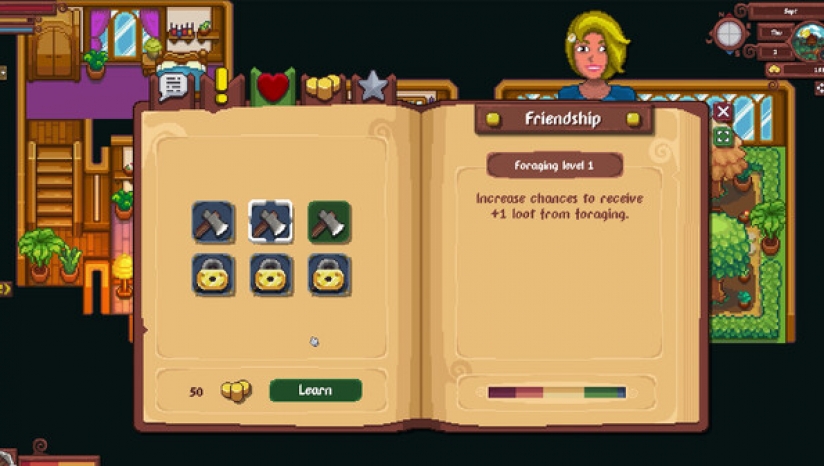 在《像素郡物語》中发展超越同伴关系的友谊。这些朋友可成为你的好搭档,陪伴你踏上冒险之旅,协助你收集资源和完成任务,这一切都归功于“跟随”功能,它使你的像素郡之旅更加好玩,更加身临其境。