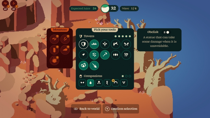 游戏采用色彩鲜明的2D卡通渲染风格,界面简洁直观,炮塔与怪物设计兼具辨识度与趣味性。例如,炮塔以模块化造型区分功能,怪物则通过外形特征暗示行为模式(如带盾怪物防御高、飞行单位无视地形)。
