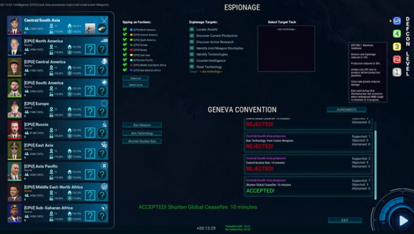 从冷战早期到近未来创新,科技发展跨越多个时代,包括隐形军舰和太空武器系统。修改后的外交系统引入新的谋略层级,玩家将可以达成研究协议,进行停战谈判,并交易己方占领的领土。覆盖全球的外交措施(如禁止特定武器的国际条约)为游戏提供了重塑全球冲突进程的全新战略可能性。