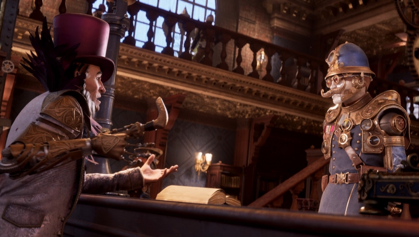 游戏采用虚幻引擎打造,构建出层次分明的蒸汽朋克美学:黄铜齿轮镶嵌于哥特建筑,蒸汽管道缠绕机械飞艇,富人的发条假肢与贫民的油污工装形成强烈视觉对比。动态光影与粒子特效强化时间旅行场景——穿越时空中撕裂的金属碎片与齿轮漩涡,现世因玩家选择产生的即时环境变迁(如工厂废墟焕新为图书馆),均以高精度细节呈现。