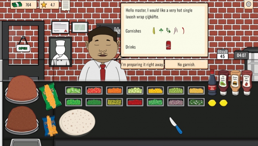 在你的餐厅中掌控 Çiğköfte 的美味,《Master of Çiğköfte》让你经营一家提供土耳其传统街头美食的店铺!将预制的 çiğköfte 包入拉瓦什面饼,加上酱料,搭配饮料,打包并送到顾客手中!