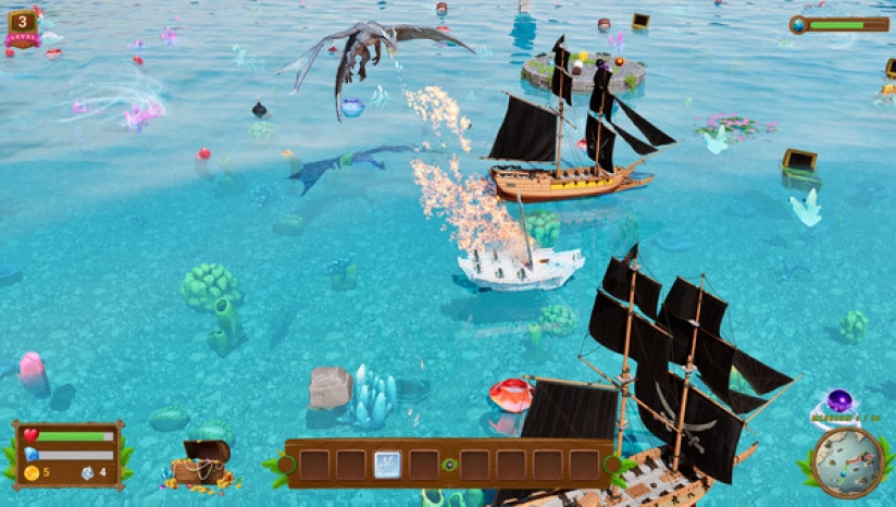 2、一场壮观的海战,游戏内容是保护自己免受海盗的侵害,额外的挑战是保护龙蛋。