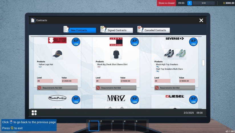 设置收银台与试衣间减少排队,亲自扫描商品完成支付(支持现金/刷卡切换)。通过装饰、音乐与清洁维护提升满意度,顾客评分(1-5分)直接影响收益与升级。