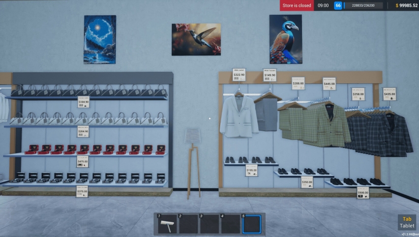 2、动态光影与流畅人物动作:顾客拆包、试衣、结账等交互配合昼夜循环增强沉浸感。