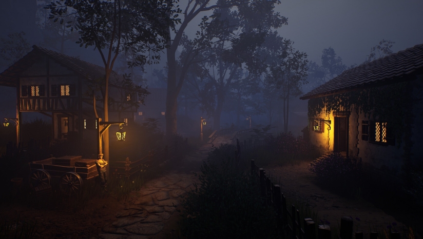 游戏采用中世纪手绘美术风格,场景细节考究——从破败城堡到阴森洞穴均呈现细腻纹理与光影层次。动态天气系统(如阴云透下的光线)强化氛围沉浸感。音效上融合古典管弦乐与环境音,搭配角色配音深化剧情表现。技术层面优化PC多硬件配置,确保画面流畅性与视觉表现力平衡。