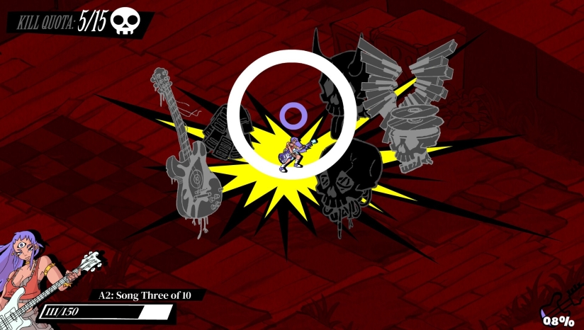 《Kill The Music》是由Nikko Nikko开发的轻肉鸽节奏弹幕游戏,玩家将扮演被乐队成员鬼魂附身的音乐家Roxie,在永恒循环中对抗死神的压迫。游戏创新地将战斗与音乐节奏结合,武器攻击会随节拍自动触发,精准踩点可大幅提升伤害,同时积攒「独奏值」能释放全屏清场的炫目技能。每轮战斗后可选择强化升级,通过学习不同乐器的「合奏」组合打造独特战斗风格,轻度Roguelike元素带来重复游玩的策略深度。