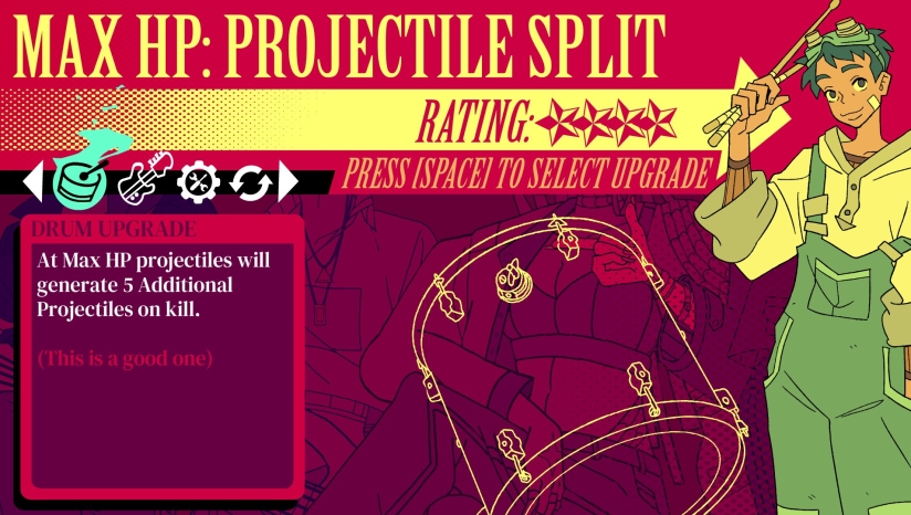 结合节奏游戏操作感、弹幕射击的密集敌人、肉鸽随机升级,形成高重复可玩性。