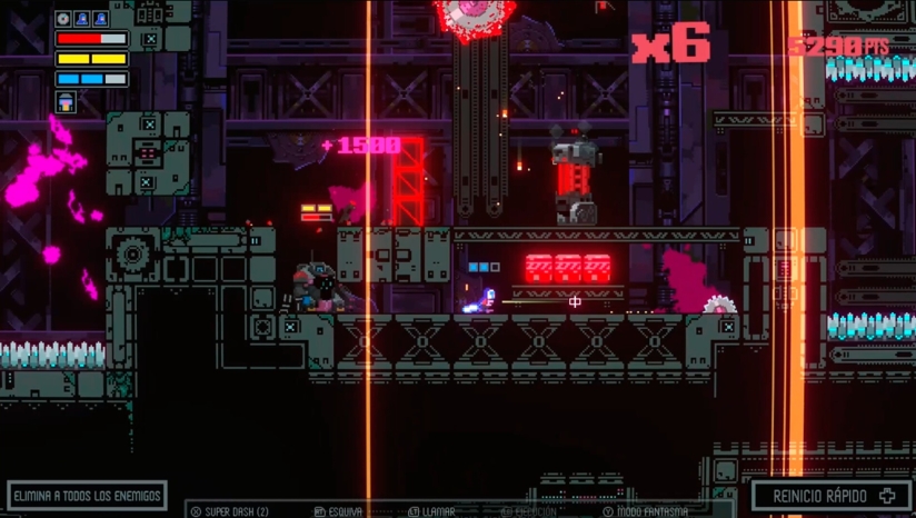 装备重型枪械,提供远程火力压制,行动较慢但攻击范围广。玩家需根据战场需求即时切换角色(如用羽田清理杂兵,切换M.O.T.H.E.R应对空中敌人),结合跳跃、闪避等动作应对复杂弹幕与地形障碍。关卡设计鼓励创造性解法——同一场景可通过纯斩击、纯射击或混合策略通关,并设有分数评级系统,解锁新武器与剧情碎片。
