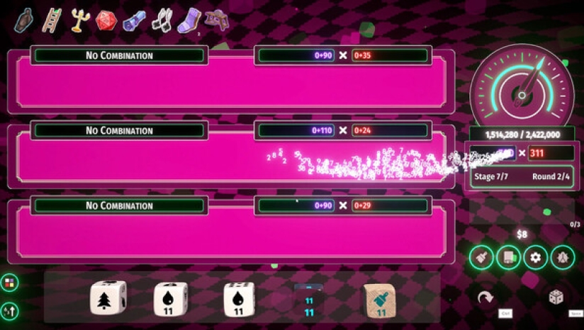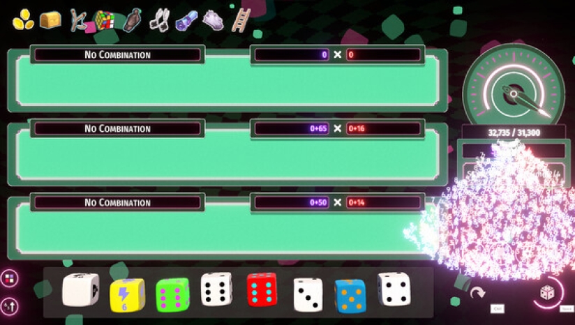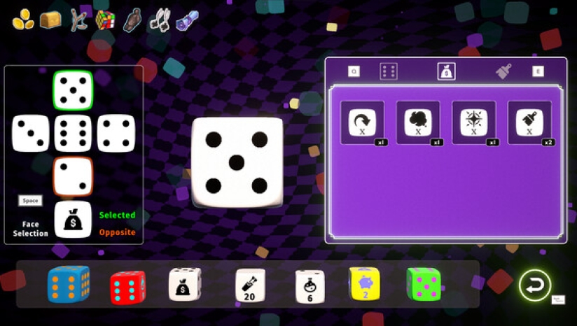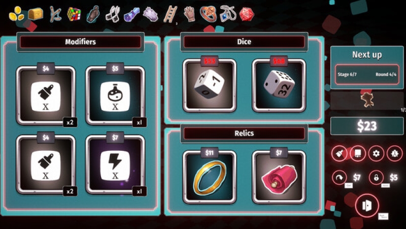 收集强大的遗物,与骰子形成协同效果,并升级你的组合槽位。谨慎选择在商店中购买的物品和使用方式。不要太贪心——你永远无法预知是否会掷出想要的点数……除非你把骰子自定义到每一面都是相同的数值!