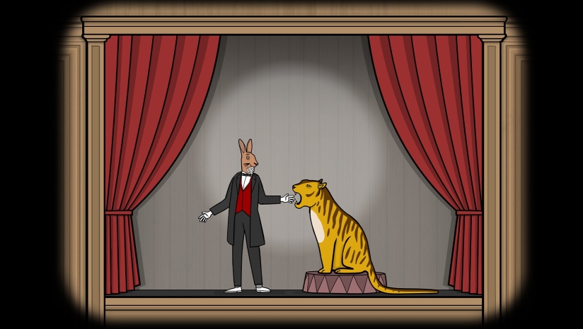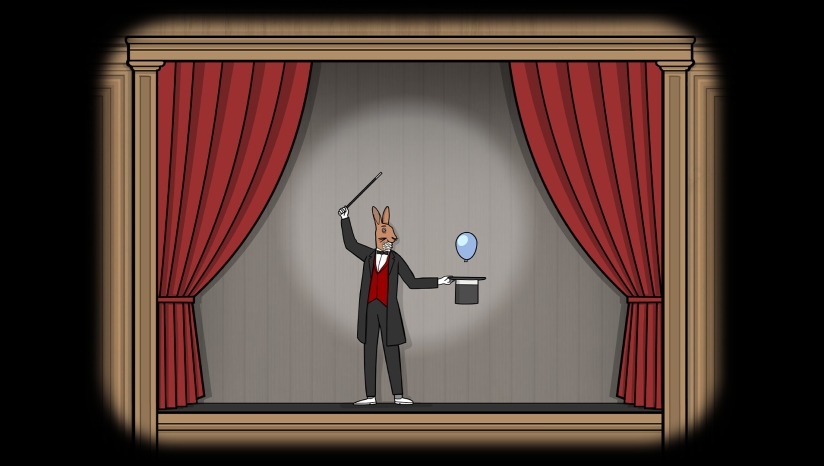 《兔子先生的魔术秀》是荷兰独立工作室Rusty Lake为庆祝十周年推出的免费点击式解谜游戏。玩家以观众身份参与兔子先生的20场奇异魔术表演,在华丽舞台背后逐步揭开隐藏的诡秘真相。游戏延续锈湖系列标志性的超现实怪诞风格,融入经典角色与彩蛋。玩家需通过点击交互观察推理破解谜题:按顺序戳破气球、依据花瓣排序花朵、配合节奏插剑、修复动画脚本逻辑等,还可收集隐藏扑克牌解锁成就和额外剧情。
