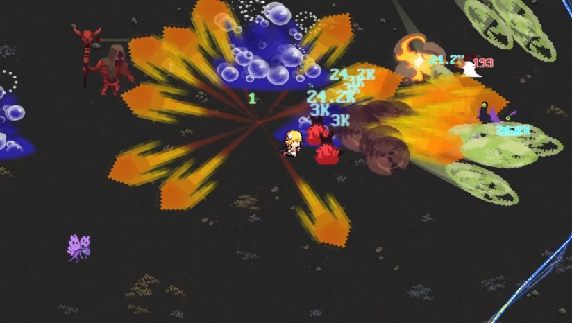 元素攻击碰撞时生成粒子漩涡,冰爆特效伴随像素化冰晶飞溅。