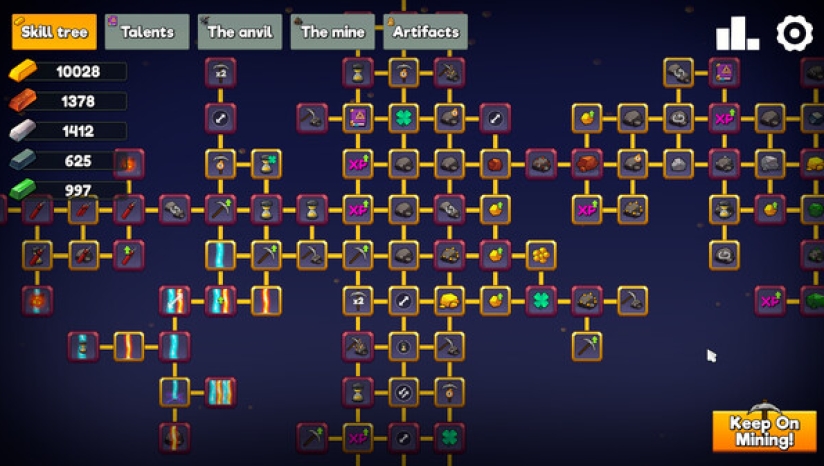 矿井!当你解锁矿井后,它会自动挖矿并立即锻造成金属条。矿井是 Keep on Mining! 的放置玩法核心!