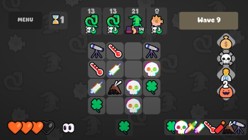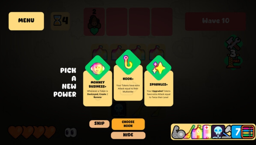 在每波结束时选择一个新的令牌添加到您的集合中。有100个代币可以发现,每个代币都有独特的效果!