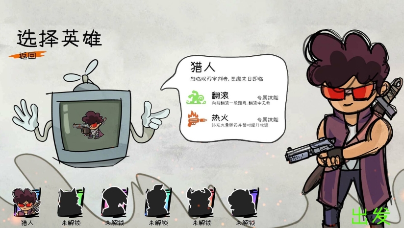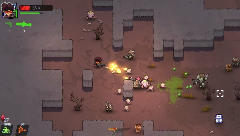 枪刃游侠是一款手绘风2Droguelike动作射击游戏,玩家扮演末世游侠,在随机生成的关卡中搜寻枪械、获取异能,以此不断击败更强大的怪物。