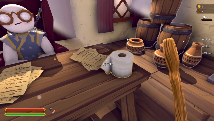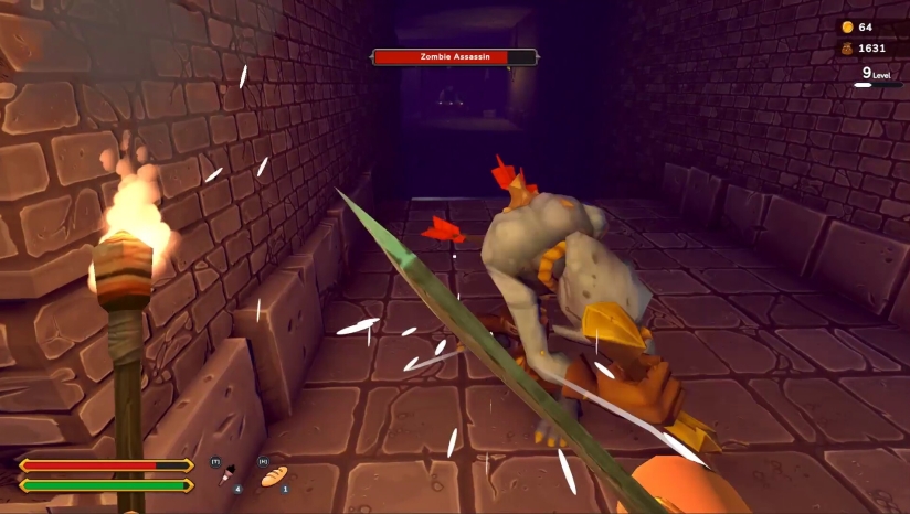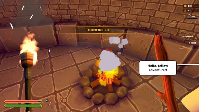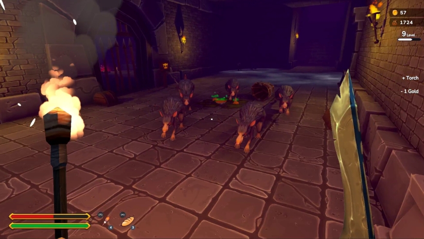 游戏采用低多边形美术风格,以明快色彩和夸张比例强化幽默基调。地牢场景融合蒸汽朋克与奇幻元素,如机械齿轮构成的森林、荧光蘑菇点缀的钢铁废墟,形成视觉反差。角色动画突出滑稽感,例如战士挥剑时会因惯性摔倒,法师吟唱失败则自爆成烟团。尽管风格化强烈,但光影渲染细腻,动态光源与粒子特效(如魔法技能)提升了战斗表现力。
