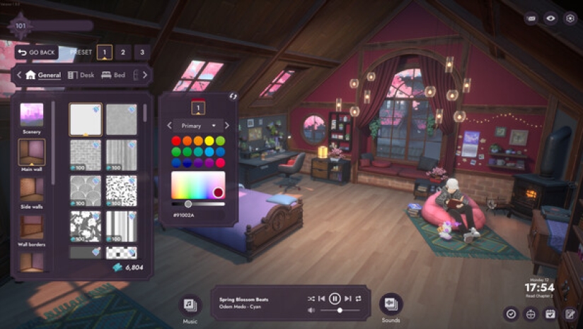 1、轻松的LOFI音乐和声音:温柔、舒缓的 Lofi 音乐和动态声景(譬如淅淅沥沥的雨声和噼啪作响的火焰)提供了完美的背景氛围,帮助人们缓解压力和放松身心。 游戏中的所有音乐均由 Homework Radio 提供,完全支持直播,非常适合在 YouTube 或 Twitch 上用作背景音乐。