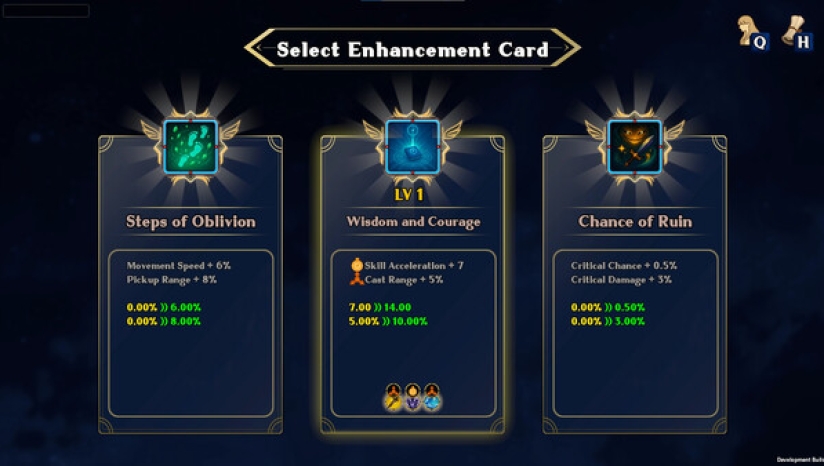 共计65种技能、23张强化卡、17项属性成长,让你每次都能打造不同的构筑。