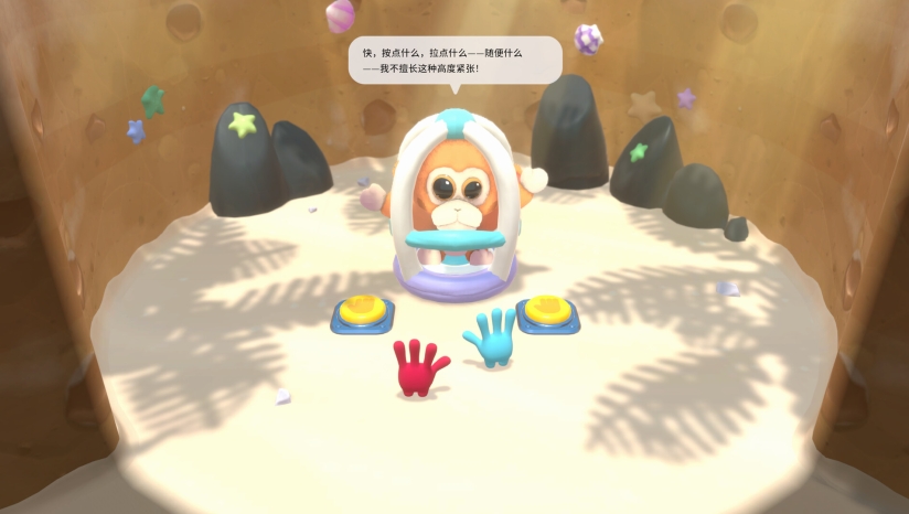 简中《左左和右右:手拉手!》是Studio Mantasaur打造的双人合作解谜平台游戏,故事围绕托儿所失踪的毛绒玩具展开,玩家将化身孩子们的左右手,在幻想世界中开启冒险。游戏核心是“石头剪刀布”机制:变“石头”可拳击障碍物,变“纸”能抓取物品或击掌协作,需默契配合闯过三个充满谜题与秘密的世界。支持本地同屏或远程同乐,用键盘、手柄即可游玩且无需分屏,3D画面色彩明快,风格温馨可爱,无论是亲友组队还是阖家互动,都能在协作中感受解谜与冒险的乐趣。