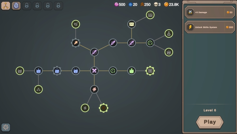 庞大的技能树: 每个节点都很重要,解锁真正有意义的属性,而不是单调的+1伤害。