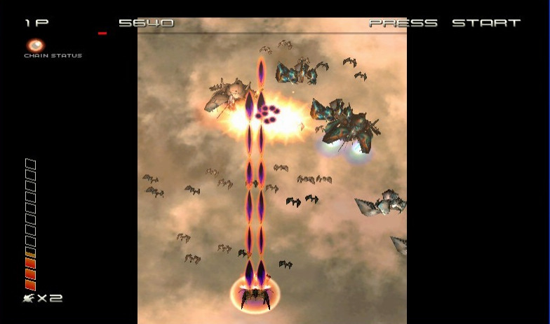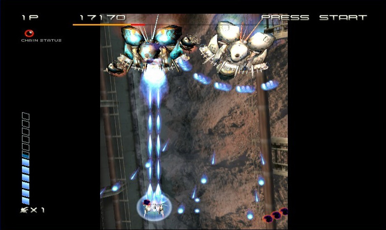 同时按下A键和B键:称为“力的解放”的特殊攻击。在吸收敌方子弹的同时,画面下方的能量槽会增加,当增加到一定量以后,便可释放这种特殊攻击。大约吸收敌方10发子弹能增加一格能量,一格能量能放出一条激光,蓄满时使用能同时放出12发。这种攻击不能抵消敌方的子弹,但能自动跟踪。 [2]