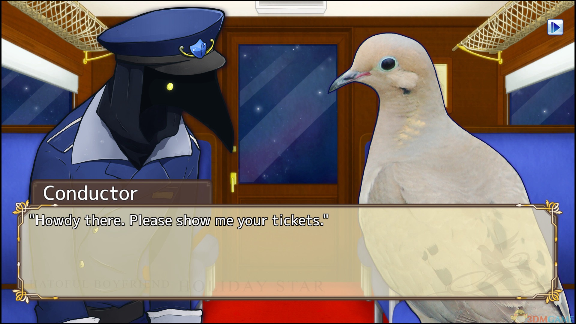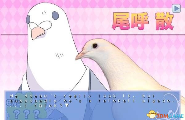 《帅鸽男友:假日之星(Hatoful Boyfriend: Holiday Star)》也就是《帅鸽男友》续作重制版。这款游戏并不是普通的腐女游戏,因为除了女主外大家都是……鸽子,其中那些公的帅“鸽”采用不少知名男性CV配音,包括樱井孝宏、石田彰、子安武人等。