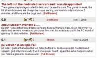 IGN已经发布了一个简短的新闻,指出现代战争2的PC机玩家正在对Infinity Ward规定使用专用服务器的决定表示不满。PC玩家正在通过IGN和Amazon对现代战争2以最低的分数进行恶评。此外, 还有超过一千的玩家在评价意见栏里进行咆哮。所以基本上,他们购买这个游戏是为了告诉别人不要购买此游戏。3DM《使命召唤6:现代战争2》游戏专题页://m.benbrouwer.com/games/800-1.htm