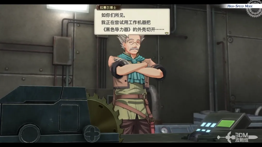 去中央工房的三楼实验室,推进剧情,拉塞尔博士正在想办法切开黑色导力器。