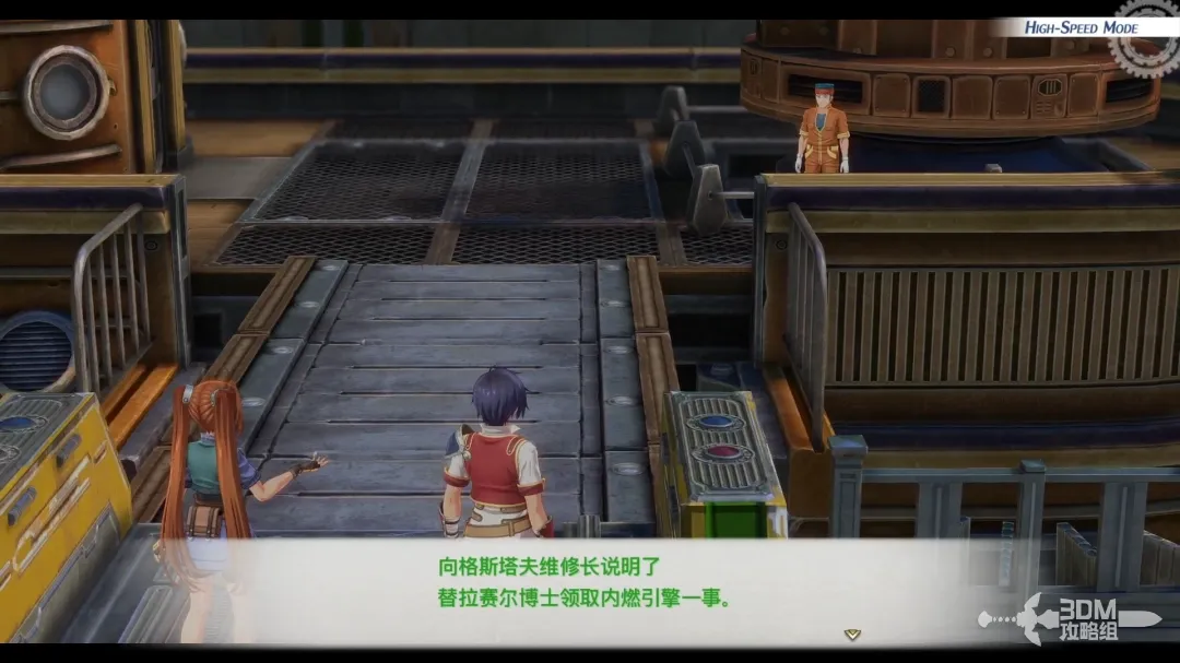 再去蔡斯飞艇起降坪和吉拉尔对话,接着下楼和楼下的格斯塔夫维修长询问内燃机。