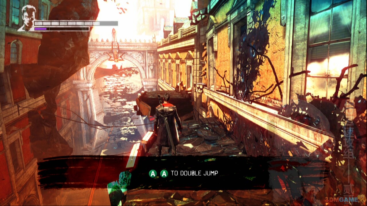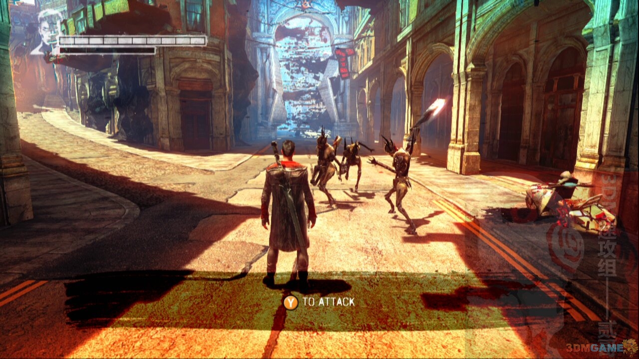 2.主角Dante进入城市后,一路跟着Kate的影像,途中遇到的小怪,屏幕会有相应的键位提示。