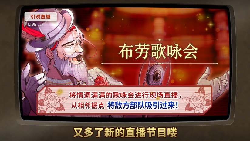 玩家可操作只有我方部队能使用的浮空战舰进行直播,以此来控制战场局势。通过直播,能实施煽动策略,让敌方部队陷入混乱,降低其战斗力;也能进行佯攻,迷惑敌人,从而确保行军路线安全,或是让战斗朝着有利于我方的方向发展。