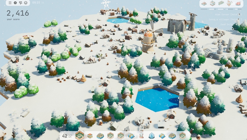 游戏采用极简美术风格,结合手绘质感与动态光影,将六边形地块的拼接过程转化为视觉享受。生物群落的差异通过色彩区分——森林以青绿与暖黄为主,沙漠则呈现赭石与沙白渐变,辅以动态天气系统(如落叶飘散或沙尘流动)增强沉浸感。优化方面,游戏对硬件要求亲民,最低配置仅需GTX 1050显卡与4GB内存,支持中低端设备流畅运行。